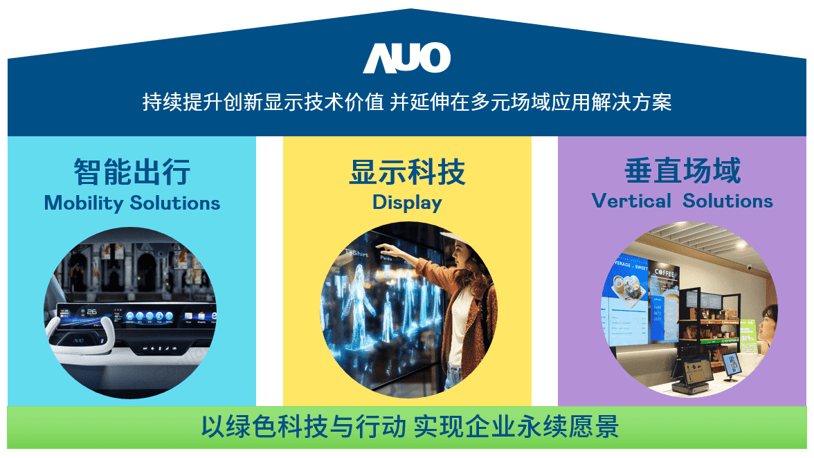 我们持续推动「双轴转型」,,,在精进显示技术附加价值(Go Premium),,,与深化垂直市场应用(Go Vertical)的策略下,,对应尊龙集团的优势竞争力与趋势,,我们奠定显示科技、、、、智慧移动、、、垂直场域三大永续营运支柱,,在显示技术领域的根基之上,,延伸布局多元场域应用解决方案。。。将先进显示科技助力智慧移动及垂直场域发展,,并以绿色科技与行动为实践,,,,在转型之路上贯彻永续经营之愿景。。。。