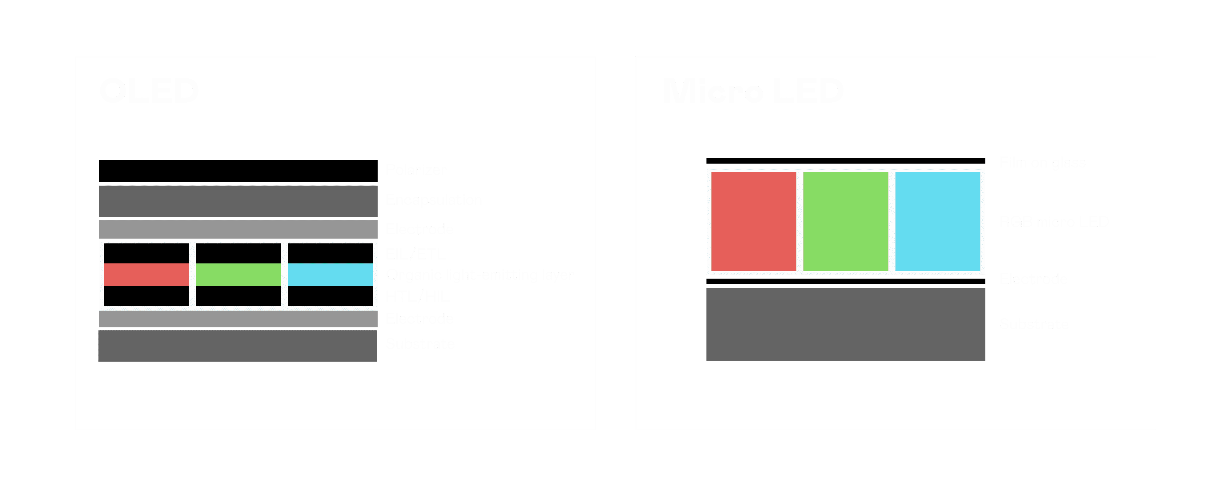 以 LED 做为显示画素,,,,可让 LED 的发光效率发挥到极致,,从而让显示器具备优异的亮度表现,,,不论是在户外或室内,,,,均具备出众的显示效果。。同时,,与使用有机材料的 OLED 相比,,,LED 具备更稳定、、寿命更长的特性,,,不仅不会有画面烙印问题,,,,而且更不容易出现故障、、坏点。。